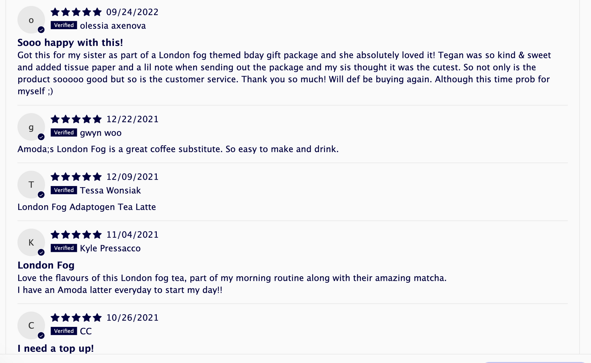 加拿大 Amoda London Fog 香草伯爵茶適應原拿鐵